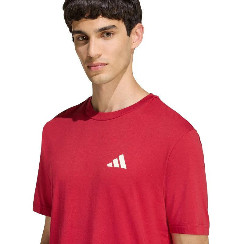Koszulka męska adidas Outdoor Mountain Biking Graphic czerwona KB2538 Koszulka męska adidas sprawdzi się na co dzień. Standardowy krój. Krótkie rękawy. Miękka, przyjemna w dotyku dzianina. Nadruk na plecach wykonany techniką gumowego sitodruku. Niewielkie logo z przodu. Materiał: 100% bawełna