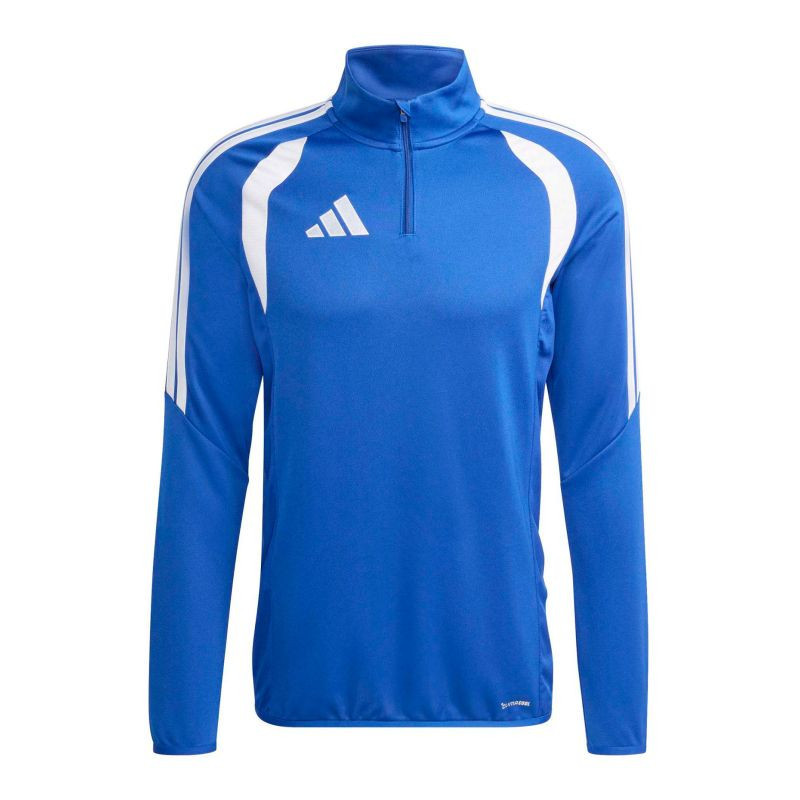 Pánská fotbalová mikina adidas Tiro 26 League Training Top modrá JY9693 Tato pánská fotbalová mikina od značky adidas je ideální volbou na trénink. Zakončená nášivkou na ochranu brady, zapínání na krátký zip. Přizpůsobený střih. Technologie Climacool je funkční řešení, které vás udrží v chladu, suchu a soustředění na hru. Spodní část a manžety zakončené elastickým lemováním. Kontrastní síťované vsadky. Pruhy na rukávech. Subtilní logo na hrudi. Materiál: 100% recyklovaný polyester.