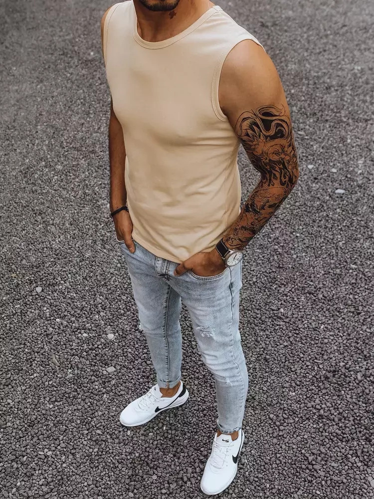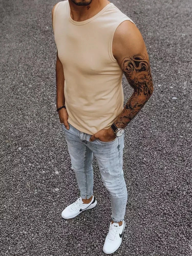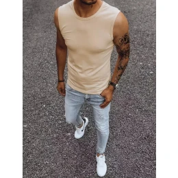 Pánské tričko bez rukávů s potiskem béžové FashionStreet RX4918