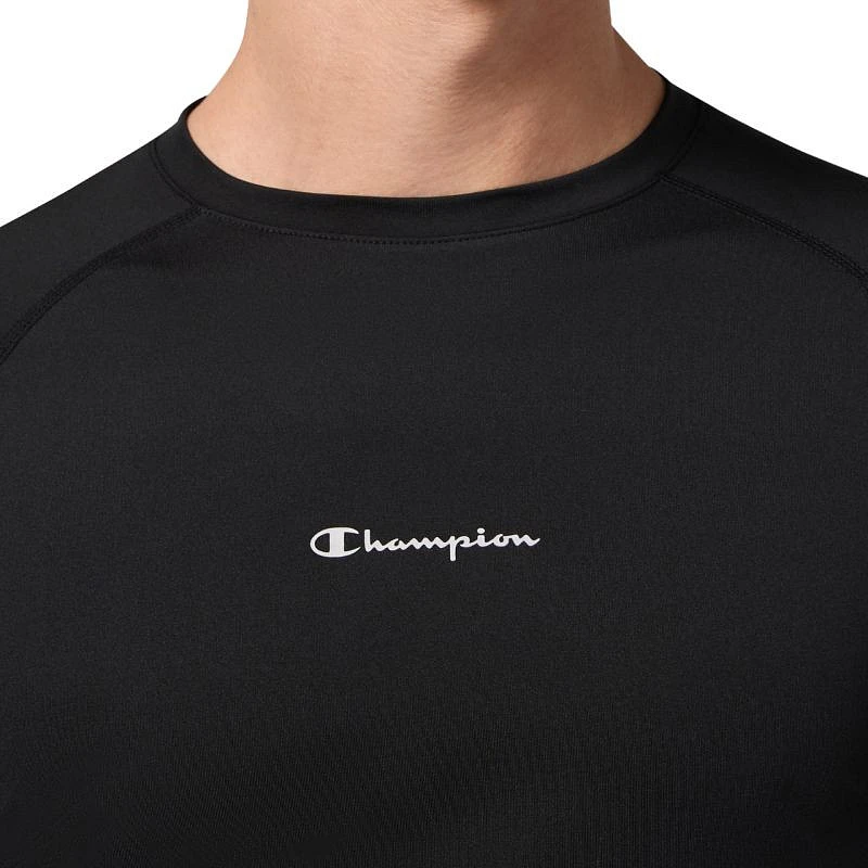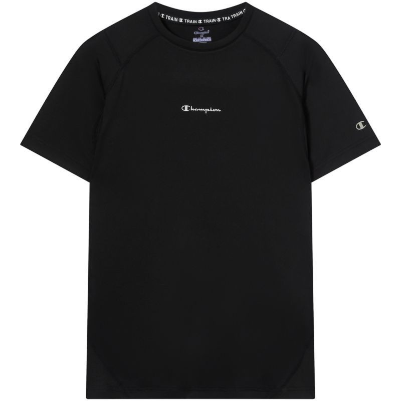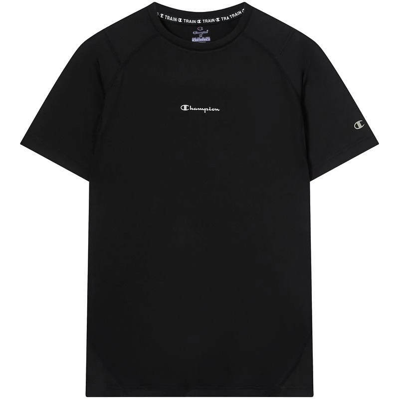 Pánské tričko Champion SS Tee černé 221381 KK001 Pánské tričko Champion je kompresní tréninkový model vyrobený ze strečového úpletu, který se přizpůsobí vašemu tělu a podpoří vaše svaly během tréninku.Technologie Quick Dry odvádí vlhkost a prodyšný panel na zádech zlepšuje ventilaci.Použití Life Natural pomáhá redukovat zápach pro delší svěžest.Materiál: 84% polyester, 16% elastan.
