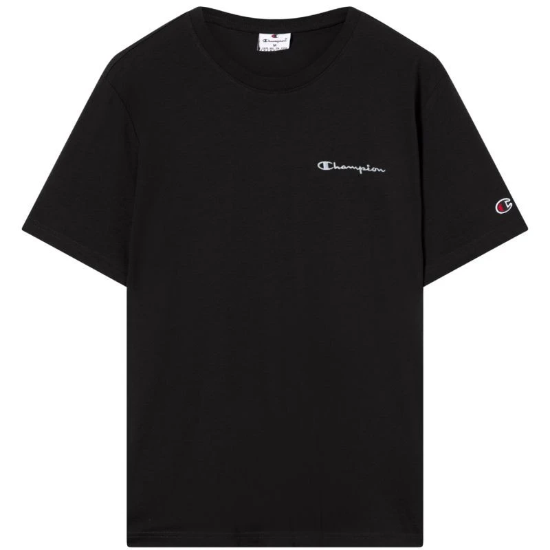 Pánské tričko Champion SS Tee černé 221798 KK001 Pánské tričko Champion pro každodenní nošení. Standardní střih. Malé logo Champion na hrudi a levém rukávu. Zaoblený výstřih s žebrovanými manžetami. Měkký materiál. 100% bavlna.