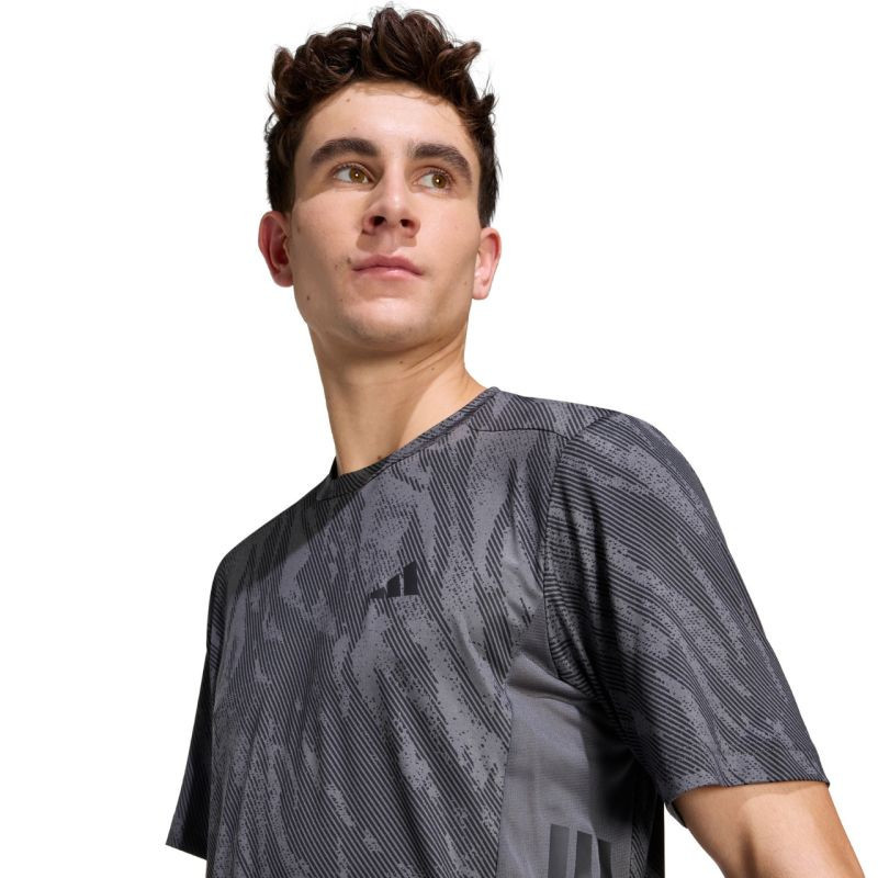 Pánské tričko adidas Cool Intensity Worout grey KQ7535 Pánské tričko adidas na trénink, vyrobené z měkké a odolné jednolícní tkaniny. Klasický střih. Technologie Climacool. Maskáčový potisk po celé ploše. Jemné logo. Materiál: 93 % recyklovaný polyester, 8 % elastan.