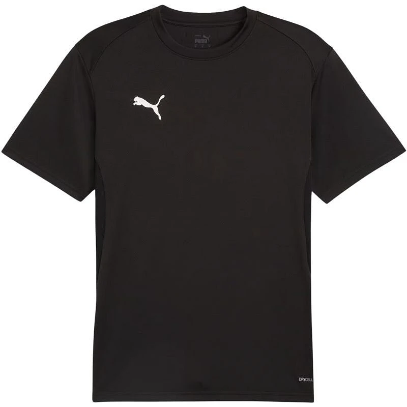 Pánské tričko Puma TeamGoal Jersey černé 658636 03. Toto pánské tričko Puma se nejlépe hodí na fotbalové zápasy a pochází z řady TeamGoal. Systém dryCell odvádí přebytečnou vlhkost a zanechává pokožku suchou. Síťovaná struktura na bocích zvyšuje prodyšnost. Tradiční střih. Subtilní logo. Materiál: 100% recyklovaný polyester.