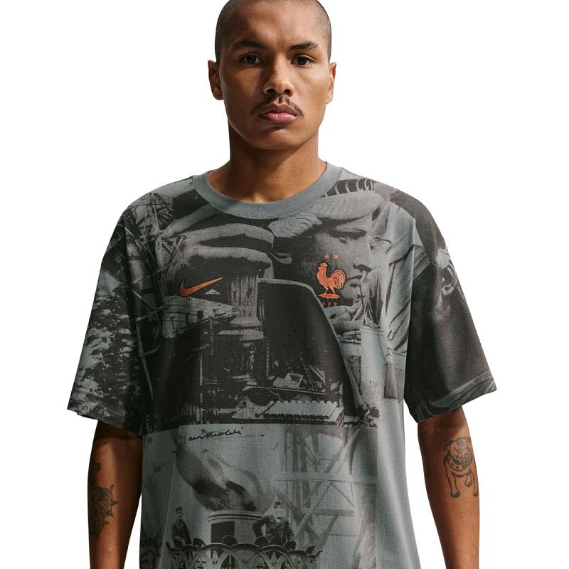 Nike FFF Iron pánské tričko šedé IQ2261 068 Toto pánské fotbalové tričko Nike FFF je ideální pro každodenní nošení, je celé vyrobené z bavlny a má volný střih.Materiál: 100% bavlna.