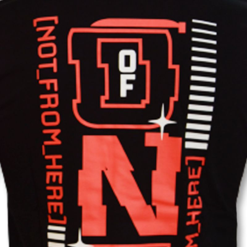 Na plecach znajduję się nadruk w kolorze biało-czerwonym.
