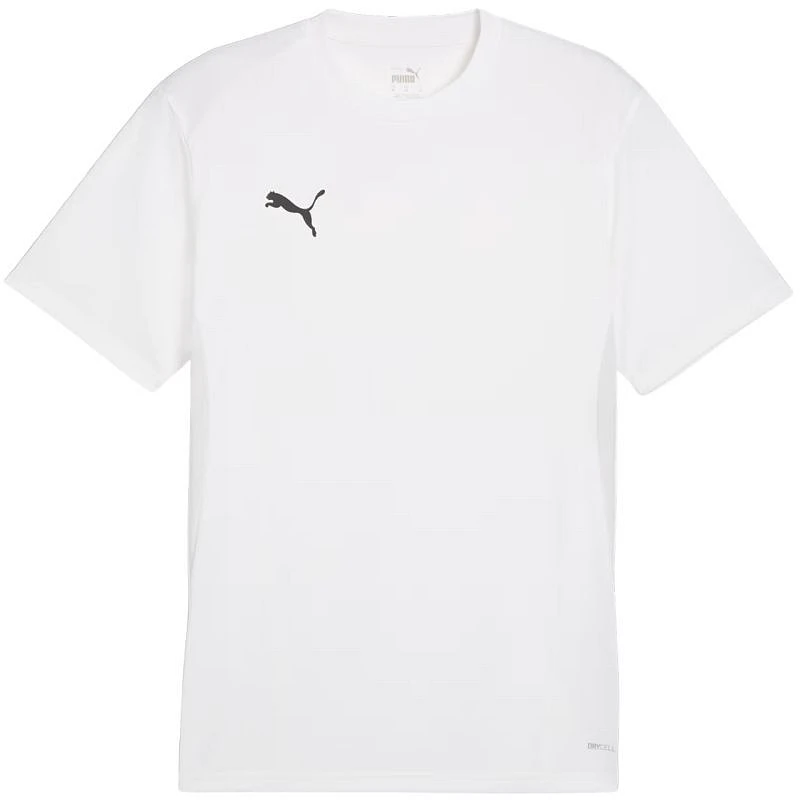 Pánské tričko Puma TeamGoal Jersey bílé 658636 04. Toto pánské tričko Puma se nejlépe hodí na fotbalové zápasy a pochází z řady TeamGoal. Systém dryCell odvádí přebytečnou vlhkost a zanechává pokožku suchou. Síťovaná struktura na bocích zvýší prodyšnost. Tradiční střih. Subtilní logo. Materiál: 100% recyklovaný polyester.