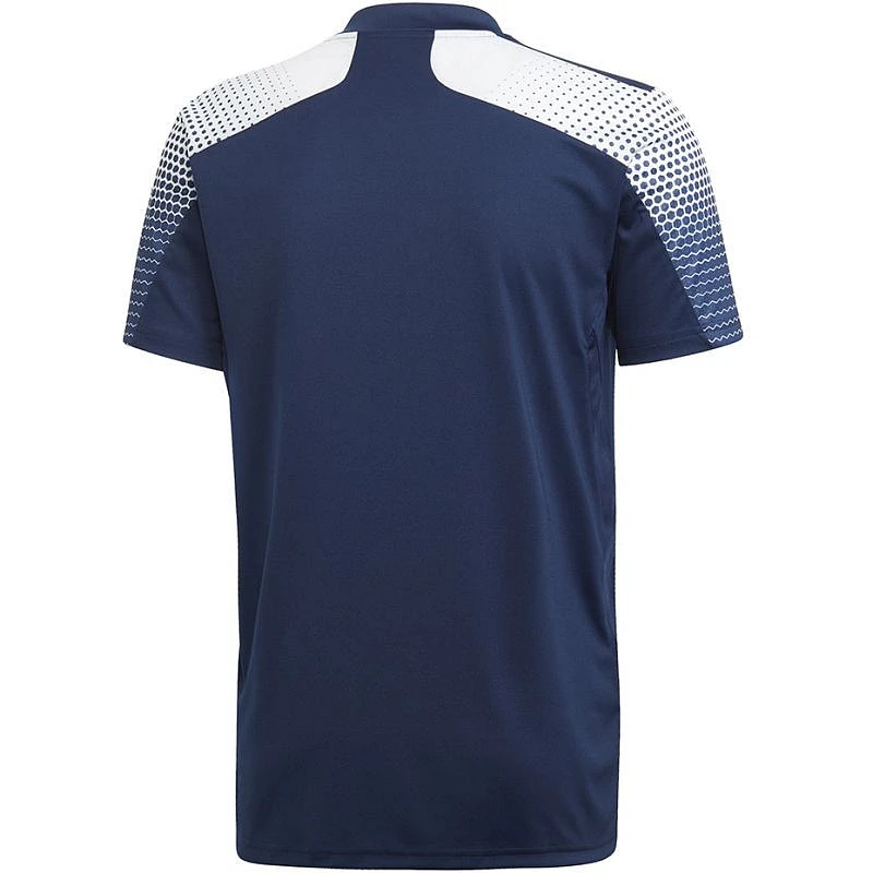 - Námořnicky modrý dres adidas s vyšitým logem značky na hrudi a originální grafikou na rukávech.