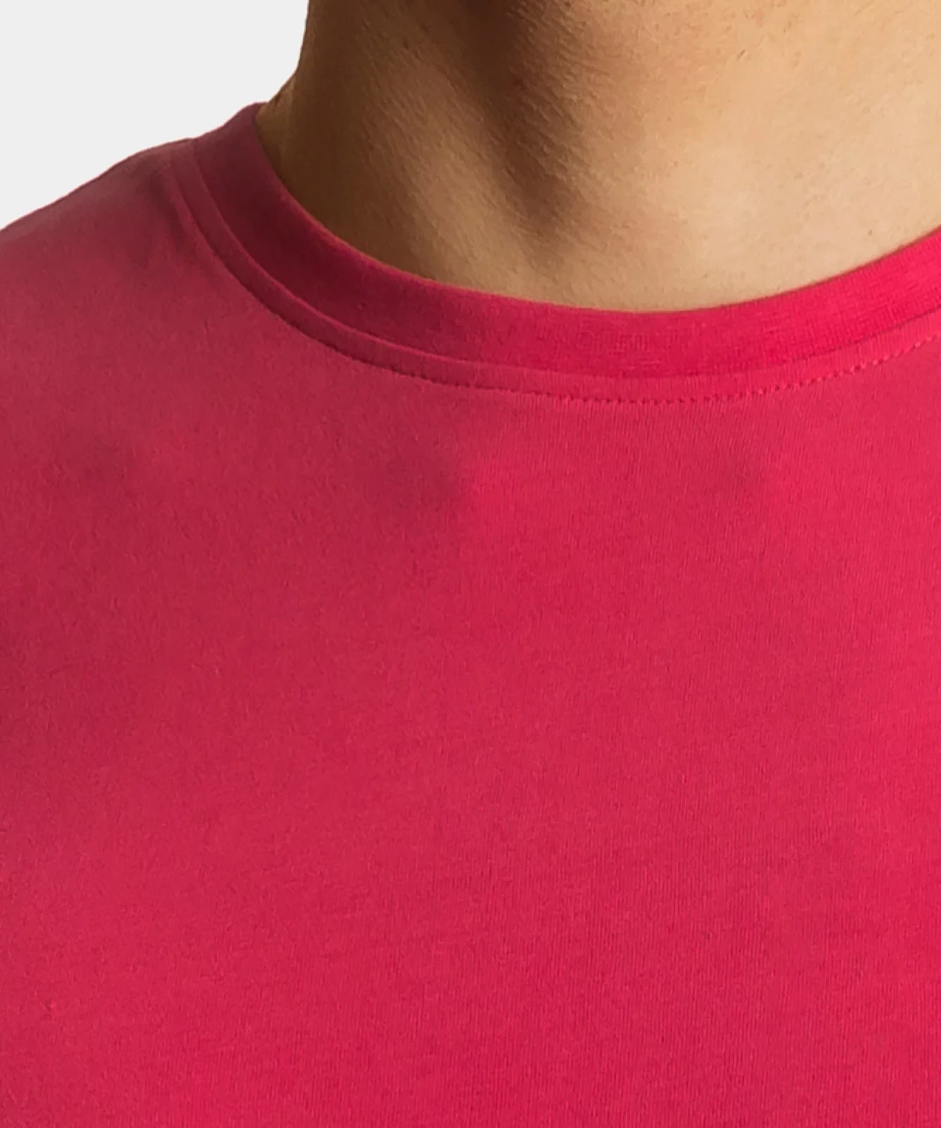 Tričko s krátkým rukávem má vyvýšený kulatý výstřih. Je vyrobeno z nejkvalitnější bavlny, podrobená procesu "česání". Dodatečně mají úplety tzv "Peach effect", což znamená, že působí jako "semišová" broskvová kůže.