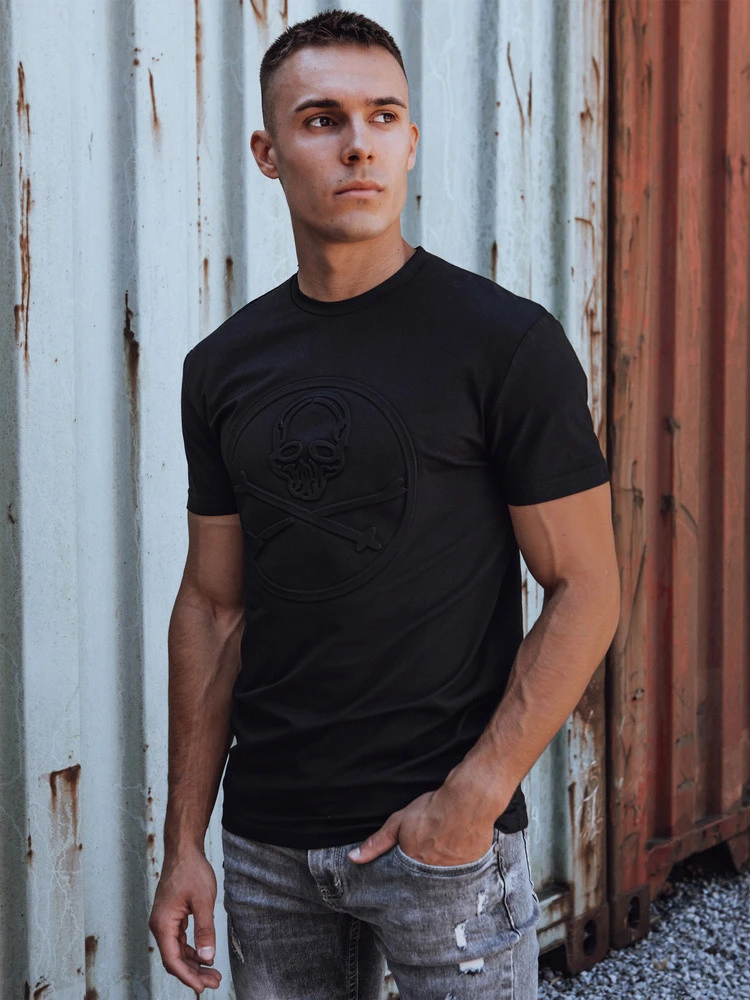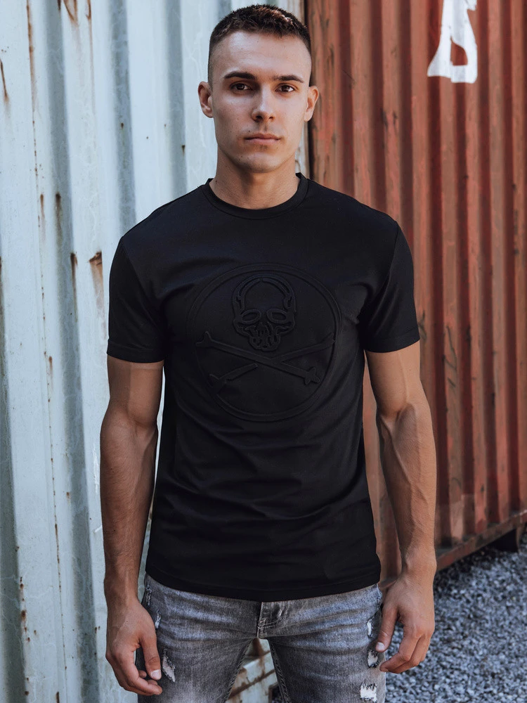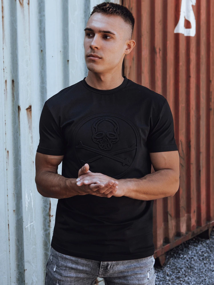 Toto tričko s krátkým rukávem je dokonalou kombinací minimalismu a výraznosti. Reliéfní potisk černé lebky mu dodává jedinečný nádech a vytváří temný, ale elegantní vzhled. Je vyrobeno z vysoce kvalitní tkaniny a je pohodlné na celodenní nošení. Skvěle se hodí na každodenní nošení a dobře se kombinuje s džínami i ležérnějšími styly. Vyberte si toto tričko, abyste zdůraznili svůj osobitý styl.