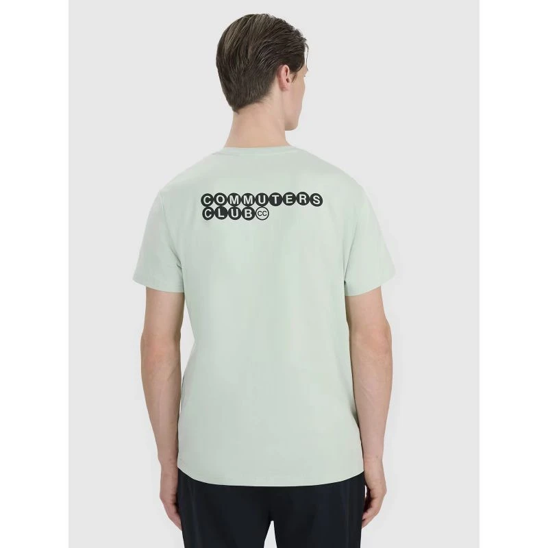 Standardowa długość sięgająca do bioder, okrągły dekolt z lekkim ribowaniem oraz nadruk z napisem "Commuters Club" na plecach dodają całości stylowego charakteru.