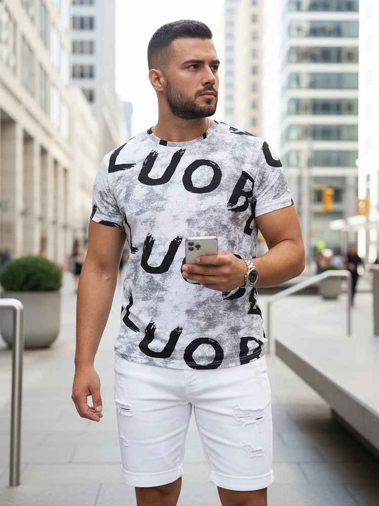 Pánské tričko s potiskem světle šedé FashionStreet RX5675