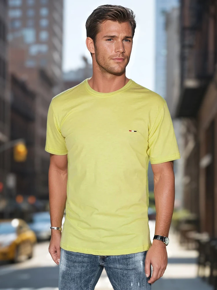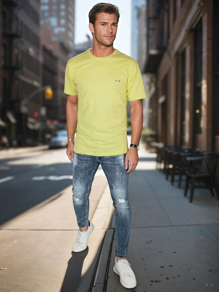 Pánské tričko s výšivkou žluté FashionStreet RX5636