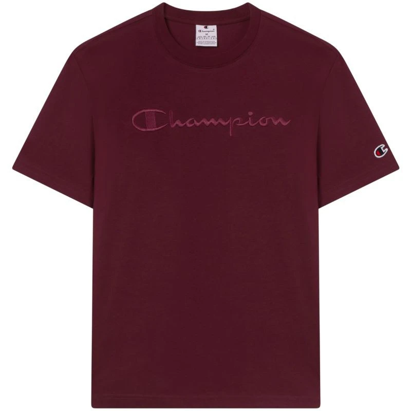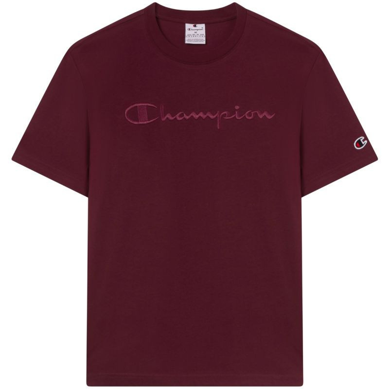 Pánské tričko Champion SS Tee bordó 220273 RS522 Pánské tričko Champion je ideální pro každodenní nošení. Regular střih. Malé logo na rukávu. Velké logo na hrudi. Materiál příjemný na dotek. 100% bavlna