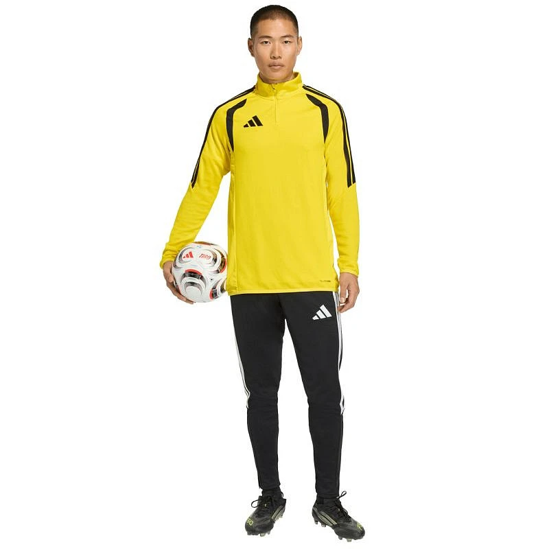 Bluza męska adidas Tiro 26 League Training Top żółta JY9689 Bluza piłkarska adidas przeznaczona dla mężczyzn sprawdzi się podczas treningów. Wykończony patką chroniącą podbródek, krótki zamek. Dopasowany krój. Technologia Climacool jest funkcjonalnym rozwiązaniem, które zapewnia uczucie chłodu i suchości oraz skupienie na grze. Dół oraz mankiety wykończono elastyczną lamówką. Kontrastowe, siateczkowe wstawki. Paski na rękawach. Subtelne logo na piersi. Materiał: 100% poliester z recyklingu