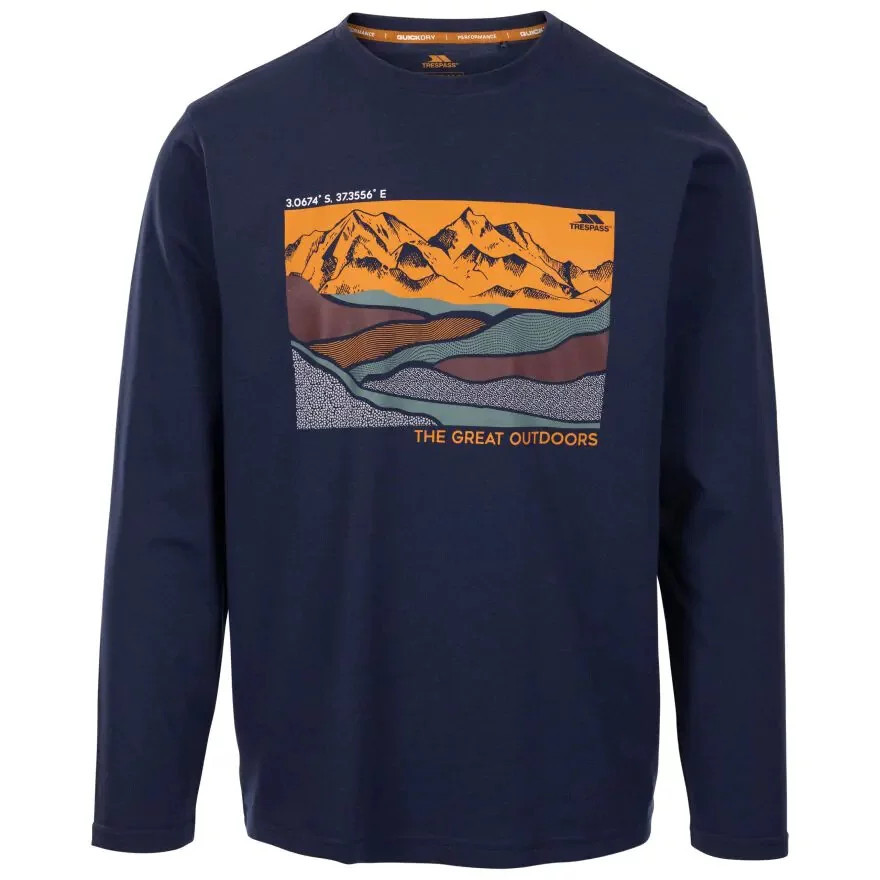 Pánské tričko Trespass Flinder s potiskem je stylový kousek pro volný čas a navíc s vlastnostmi odvádějícími vlhkost.