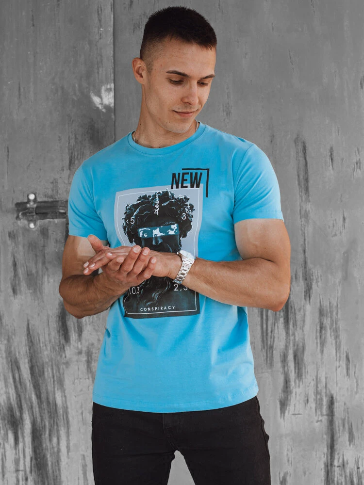 Pánské tyrkysové tričko s potiskem FashionStreet RX5551