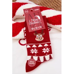 Stylové pánské vánoční ponožky v červené barvě s motivem soba a svátečním vzorem přinášejí hravý a elegantní sváteční vzhled. Vyrobené z měkkého a pružného materiálu, poskytují pohodlí po celý den. Ideální pro domácí pohodu, vánoční oslavy nebo jako originální dárek pro každého muže.