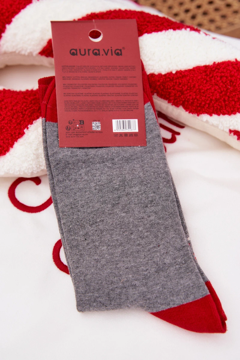 Pánské vánoční ponožky s nápisem a Santa Claus šedé