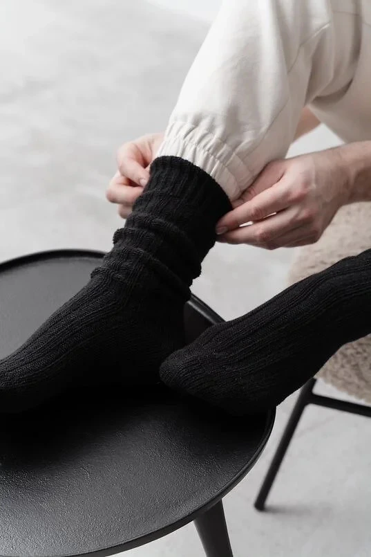 Lem a přední část modelu zdobí svislý vzor. Ponožky jsou neocenitelné na dlouhých zimních horských výletech a v zimních mrazech.