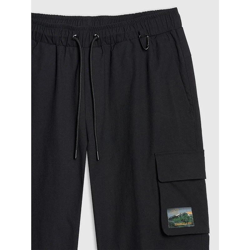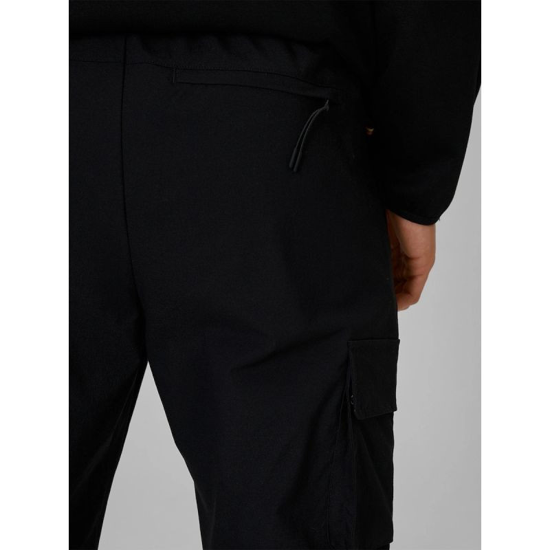Regularny krój wygodnie dopasowuje się do sylwetki, a średni stan zapewnia stabilne ułożenie w pasie. Długie nogawki zakończone elastycznym ściągaczem zwiększają wygodę użytkowania i pomagają utrzymać spodnie na miejscu, jednocześnie podkreślając ich sportowo-użytkowy charakter.