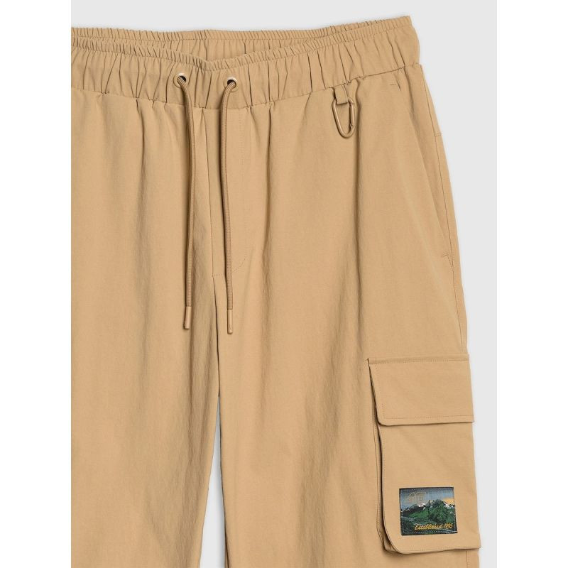 Regularny krój wygodnie dopasowuje się do sylwetki, a średni stan zapewnia stabilne ułożenie w pasie. Długie nogawki zakończone elastycznym ściągaczem zwiększają wygodę użytkowania i pomagają utrzymać spodnie na miejscu, jednocześnie podkreślając ich sportowo-użytkowy charakter.