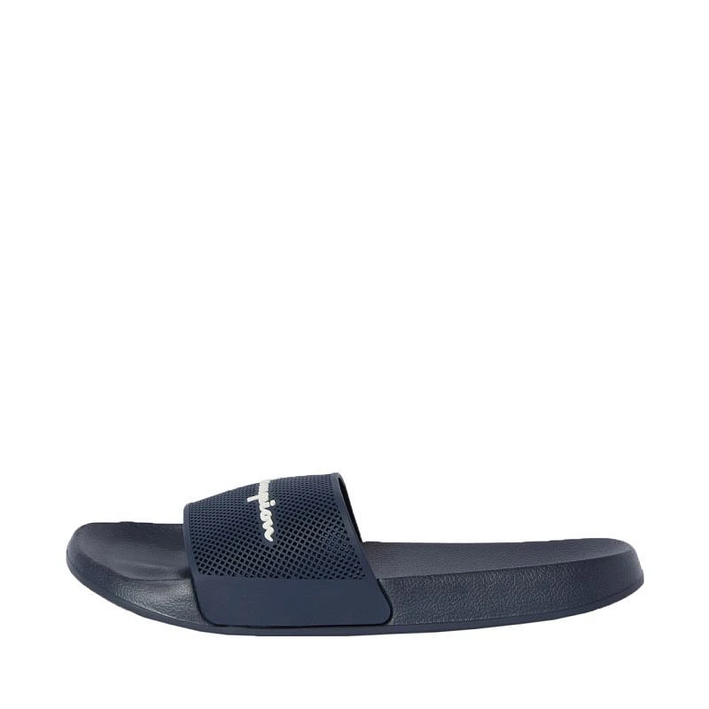 Klapki męskie Champion DTN21 Slide S22469 BS501 Klapki dla mężczyzn sprawdzą się podczas letnich dni i podczas wizyty na basenie. Profilowana wkładka. Syntetyczna cholewka. Podeszwa wykonana z wysokogatunkowego tworzywa zapewnia lekkość i optymalną amortyzację. Wyraźne logo. Ażurowa struktura paska.