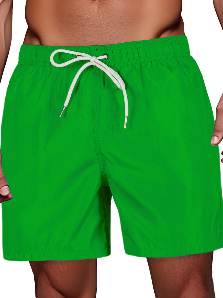 Męskie szorty kąpielowe z lekkiego i szybkoschnącego materiału, idealne na plażę, basen czy aktywność w wodzie. Elastyczny pas z kontrastowym troczkiem zapewnia wygodne dopasowanie. Boczne kieszenie oraz kieszonka z klapką z tyłu dodają praktyczności. Sprawdzą się perfekcyjnie w upalne dni.