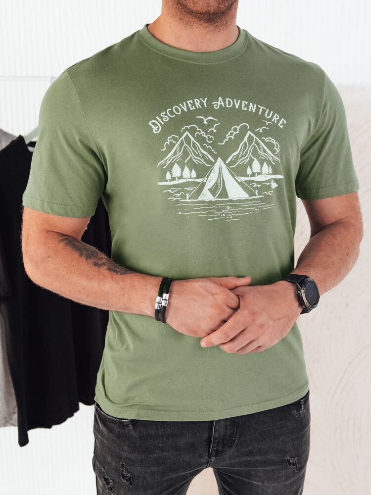 Pánské zelené tričko s potiskem Dstreet model 21973788 - FashionStreet