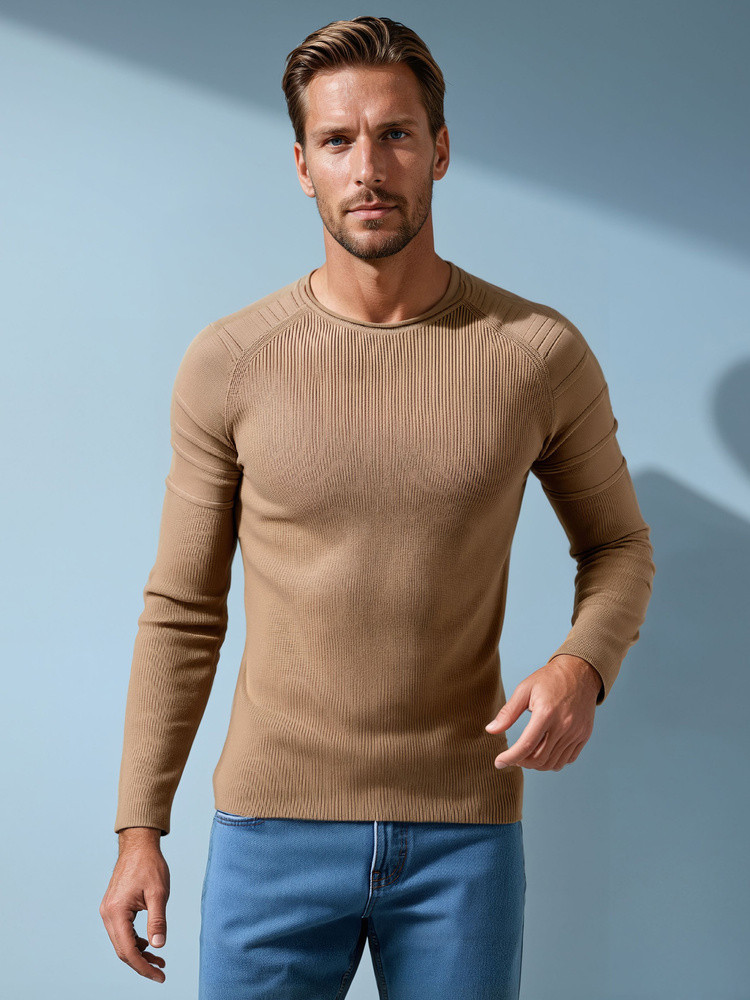 Stylový pánský svetr, který klade důraz na eleganci a všestrannost. Je vyroben z vysoce kvalitního úpletu a kombinuje klasický střih s moderní úpravou. Jemné prošívání na ramenou dodává charakter, zatímco měkká, pružná tkanina zajišťuje pohodlné celodenní nošení. Ideální pro každodenní stylizaci s džínami nebo elegantní komplety s kalhotami chinos.