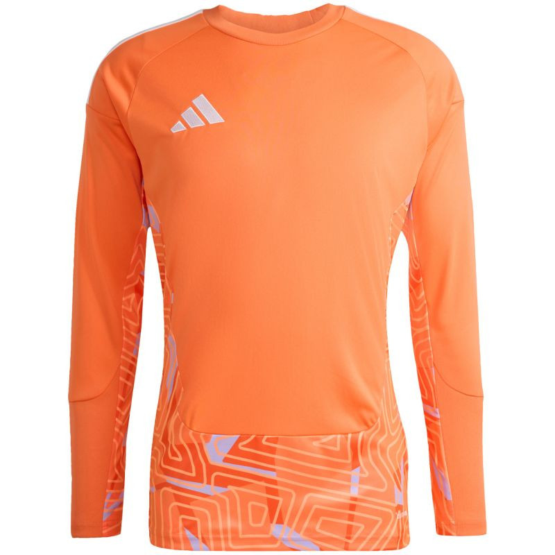 Pánský soutěžní brankářský dres adidas Tiro 26 s dlouhým rukávem Orange KB5248 Pánský brankářský dres adidas ti umožní soustředit se pouze na zápas. Systém Climacool ti pomůže udržet tě v chladu a suchu. Přizpůsobený střih se zaobleným výstřihem. Dlouhé raglánové rukávy. Pruhovaná ramena a decentní logo adidas na hrudi. Geometrická grafika. Materiál: 100% recyklovaný polyester.