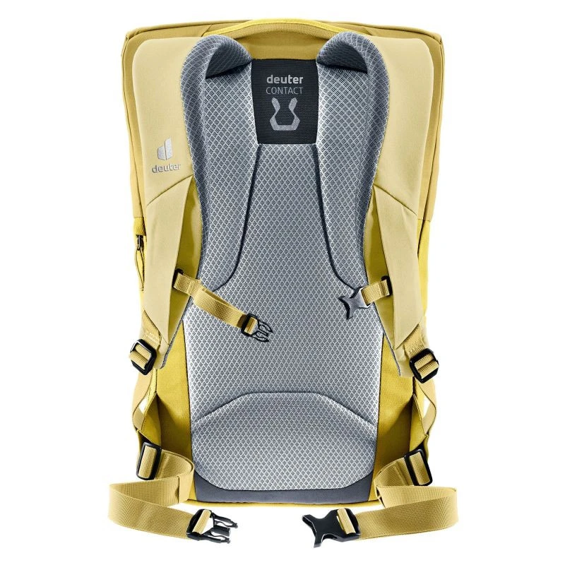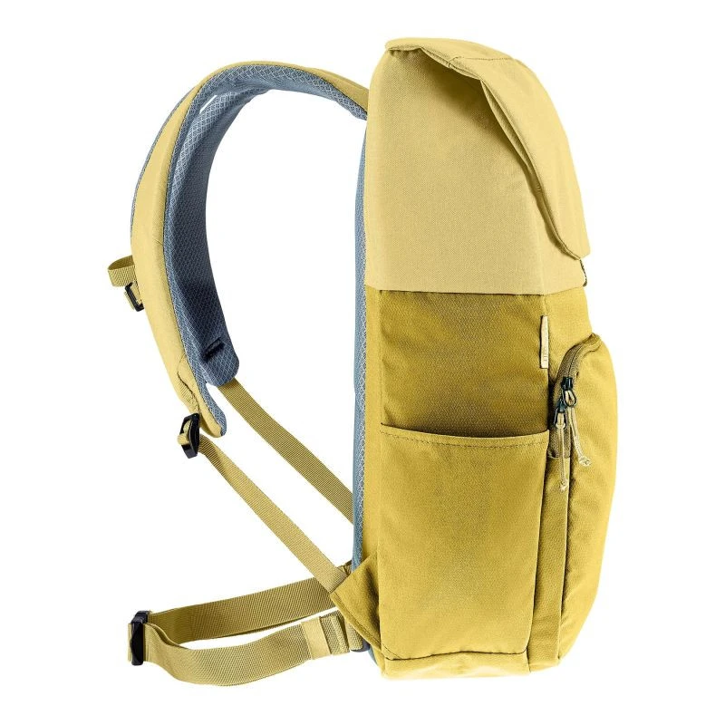 Deuter UP Sydney Turmeric Ginger je lehký městský batoh o objemu 18 litrů vyrobený ze 100% recyklovaných PET lahví (přibližně 30). Je navržen s ohledem na pohodlí a šetrnost k životnímu prostředí, má polstrovaný zádový panel a nastavitelné ergonomické popruhy. Do hlavní komory se vejdou dokumenty formátu A4, tablet a každodenní příslušenství. Batoh má samostatnou kapsu na notebook do velikosti 14 palců, organizér na drobnosti a boční kapsy na láhev s vodou. Barva Turmeric Ginger mu dodává teplý a moderní vzhled, který se dobře hodí k městskému životnímu stylu.