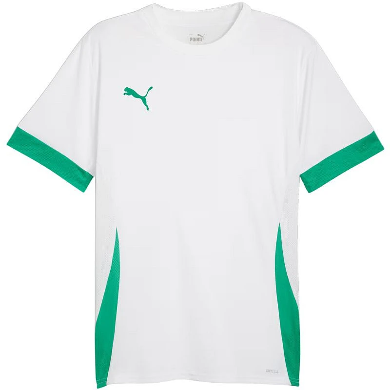 Pánské tričko Puma teamGoal Matchday Jersey bílo-zelené 705747 15. Toto pánské tričko Puma se nejlépe hodí na fotbalové zápasy. Pochází z řady teamGoal. Systém dryCell odvádí přebytečnou vlhkost a zanechává pokožku suchou. Síťovaná struktura na zádech a bocích zvyšuje prodyšnost. Tradiční střih. Subtilní logo. Materiál: 100% recyklovaný polyester.