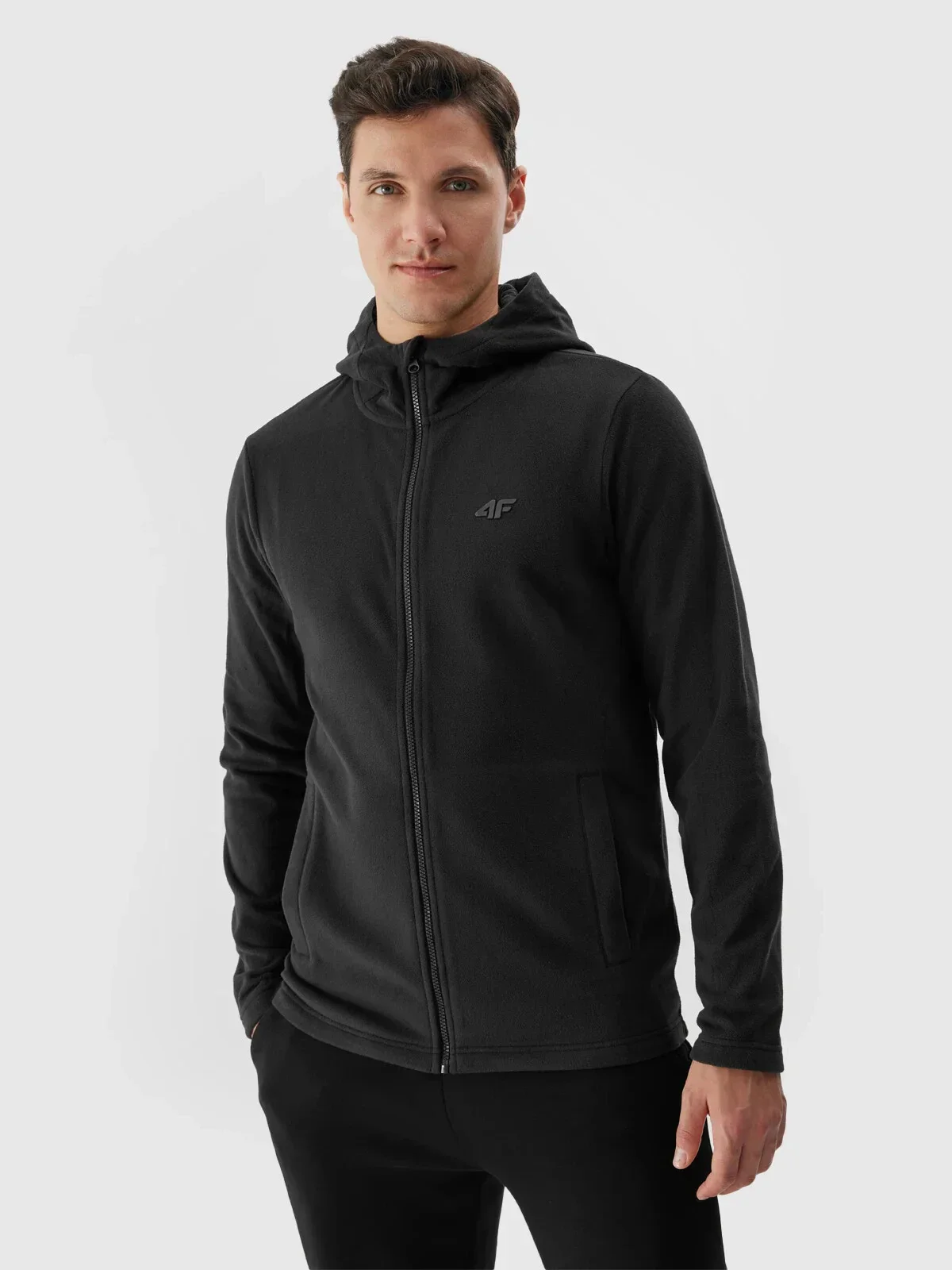 Pánský fleece regular s kapucí 4F - černý