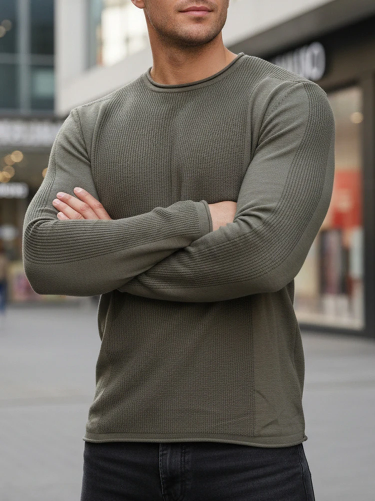 Minimalistyczny i stylowy sweter męski, który doskonale sprawdzi się w każdej sytuacji. Wykonany z wysokiej jakości materiałów, zapewnia komfort noszenia i trwałość. Klasyczny krój z nowoczesnym akcentem pozwala łatwo dopasować go do wielu stylizacji, podkreślając męski styl.