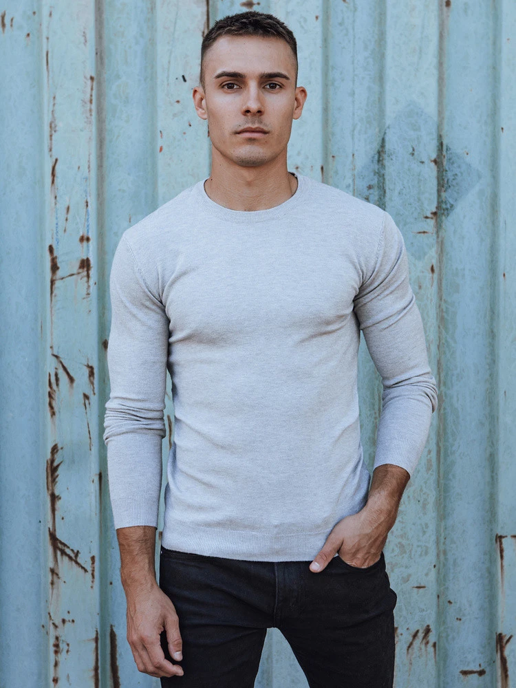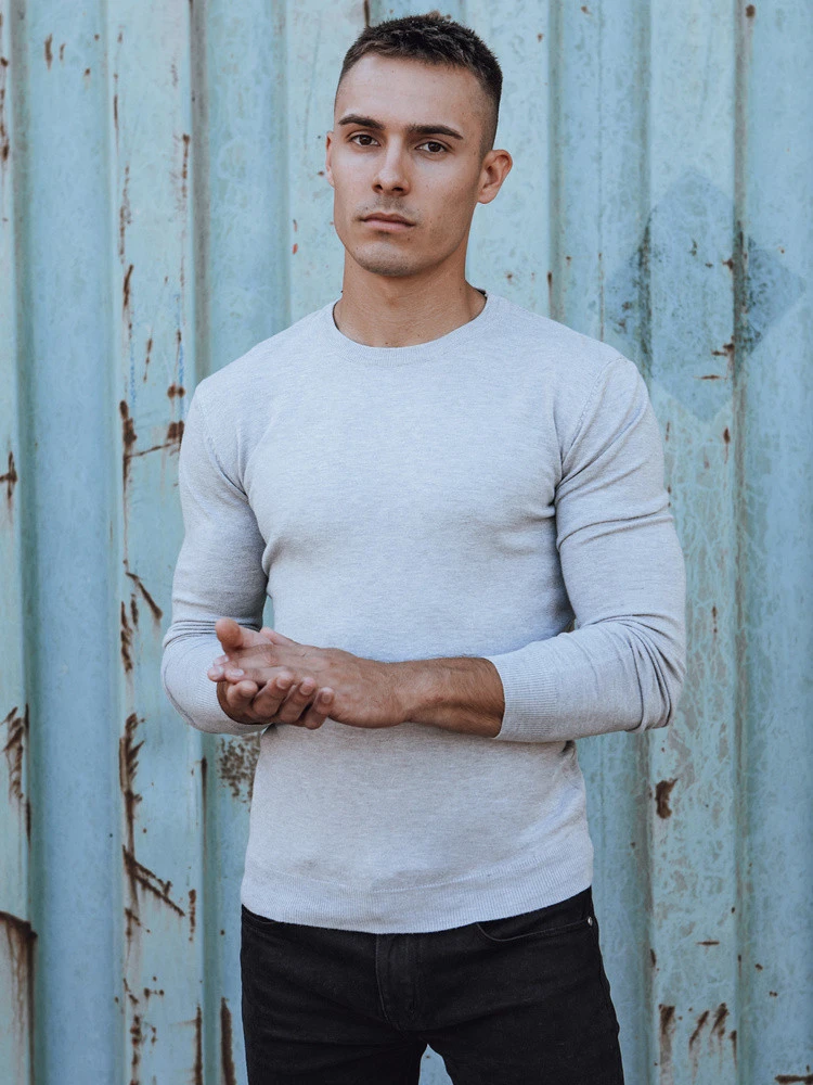 Pánský klasický svetr světle šedý FashionStreet WX2212