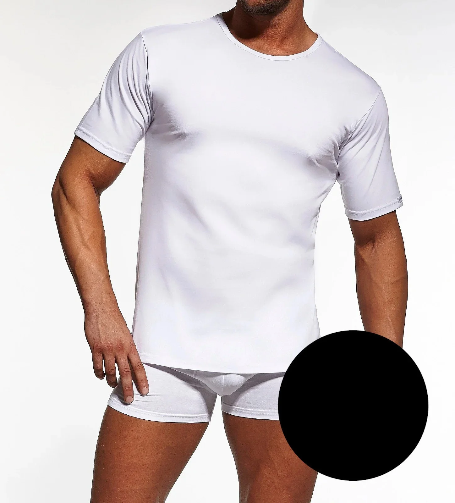 Komfortní pánský nátělník s krátkými rukávy a půlkulatým výstřihem.