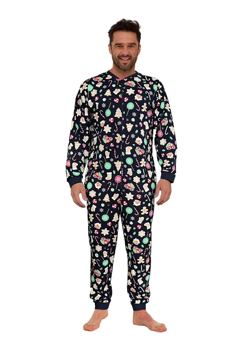 Pánský overal z kvalitní bavlny se slavnostním vzorem, zapínání na zip, žebrované rukávy a nohavice, praktické kapsy na úrovni boků.