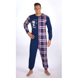 Pánský overal Sleepwalker. Overal je celopropínací, z jedné strany zdobený potiskem myši a z druhé strany celoplošnou kostkou. Dlouhé nohavice jsou ukončeny elastickými lemy. Bavlněný materiál je poddajný a jemný na dotek. Pyžamo je vhodné i na denní nošení.