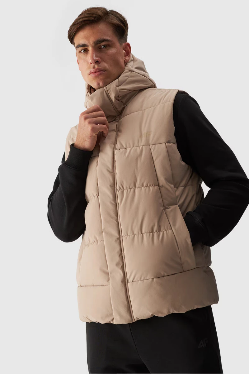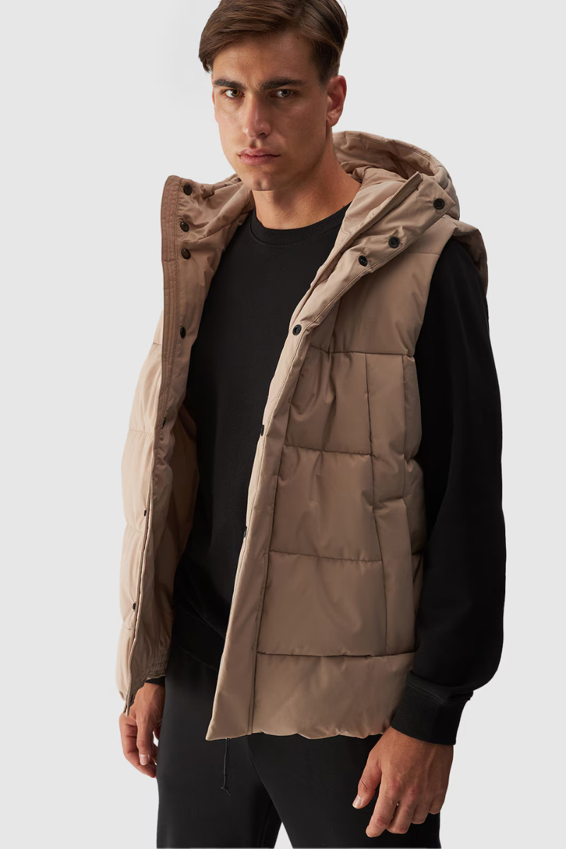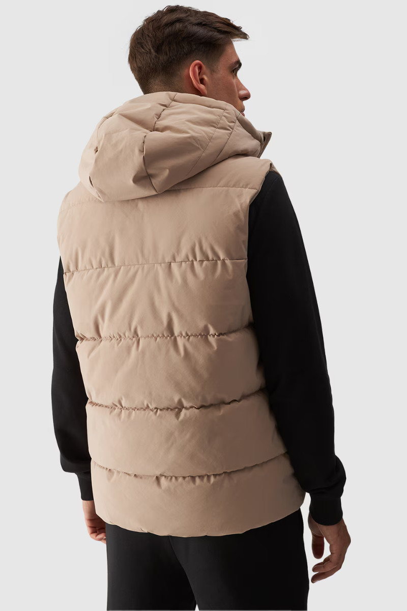 Pánský Péřový Bezrukávník S Kapucí Béžový 4FWAW24TVJAM144-83S