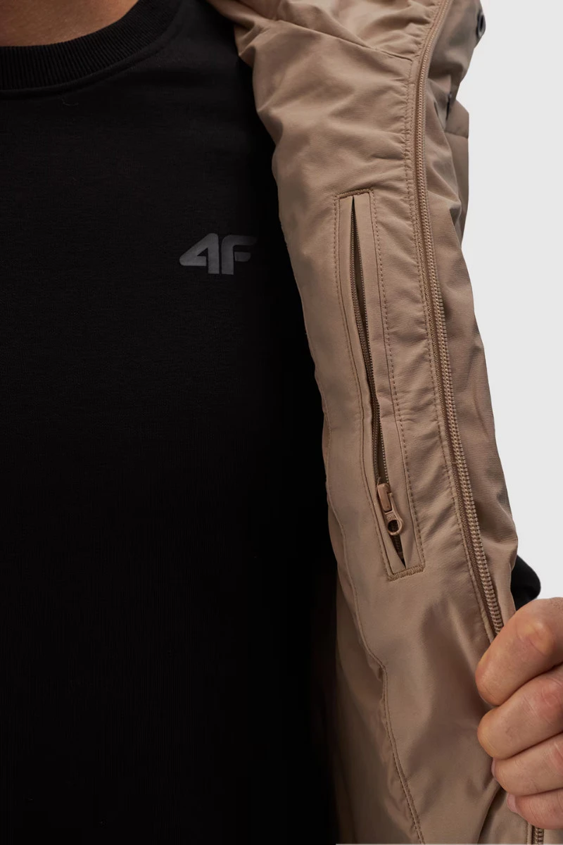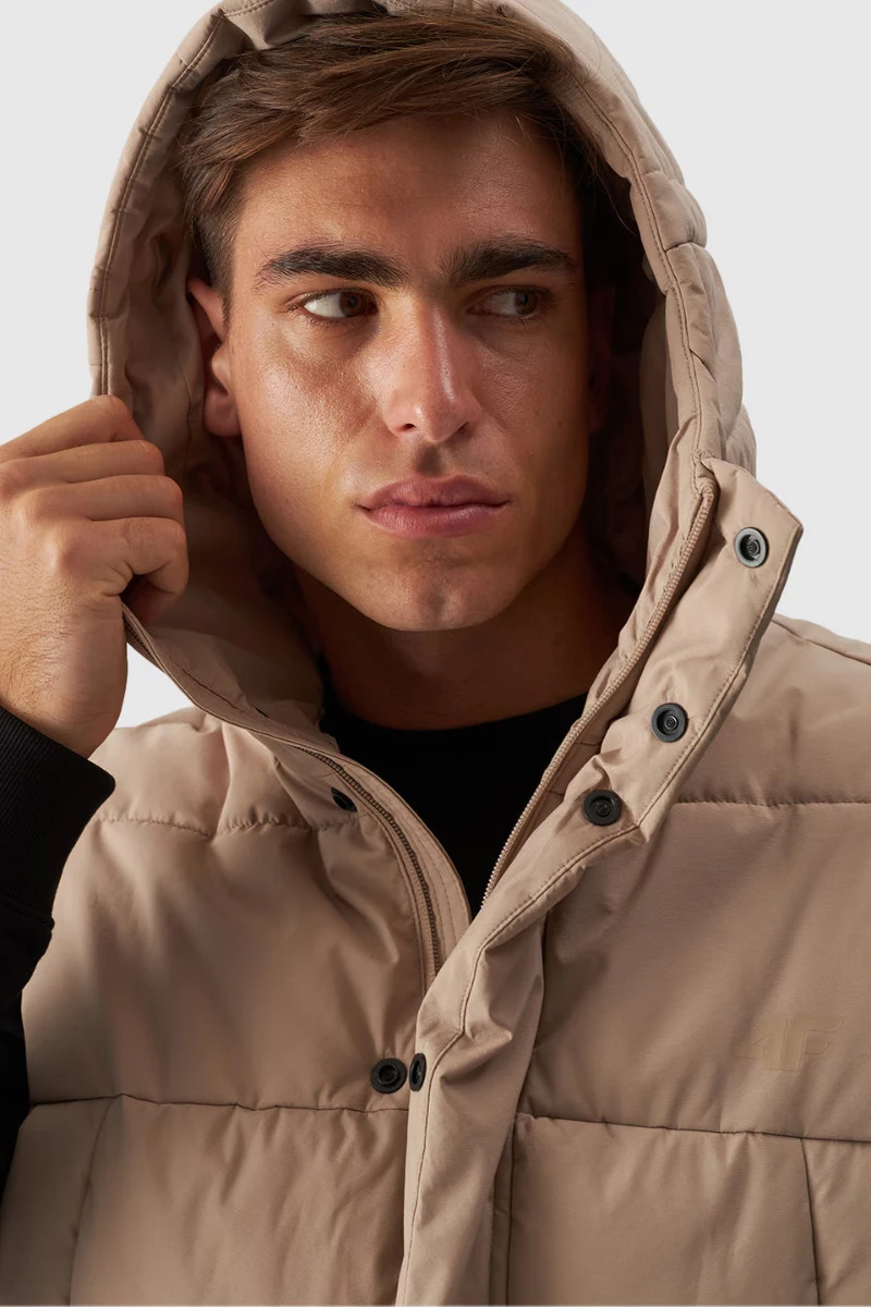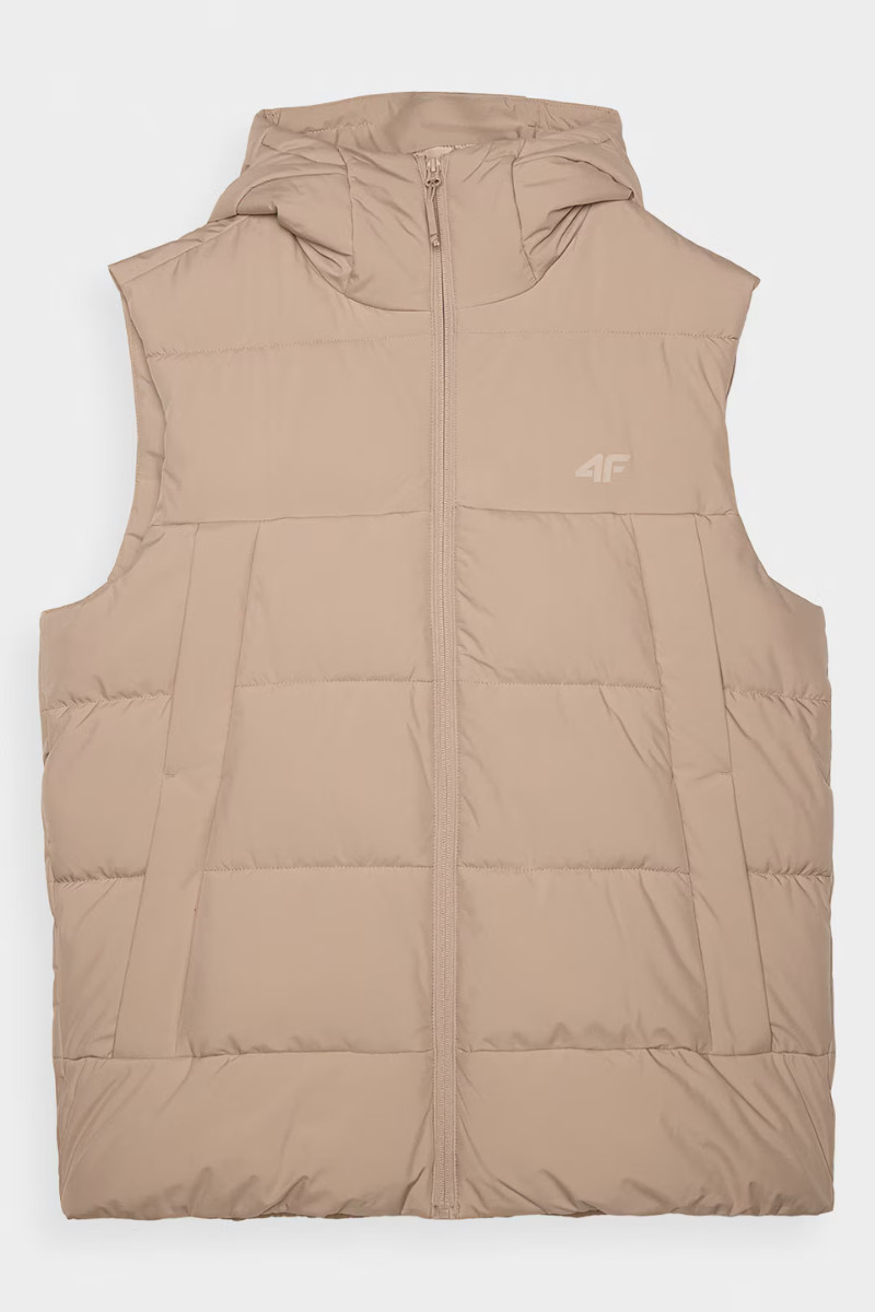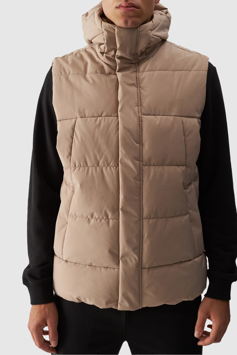 Pánský Péřový Bezrukávník S Kapucí Béžový 4FWAW24TVJAM144-83S