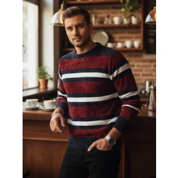 Pánský pruhovaný červený svetr FashionStreet WX2264