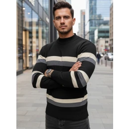 Přidání recenze k Pánský pruhovaný svetr s polovičním rolákem černý FashionStreet WX2127