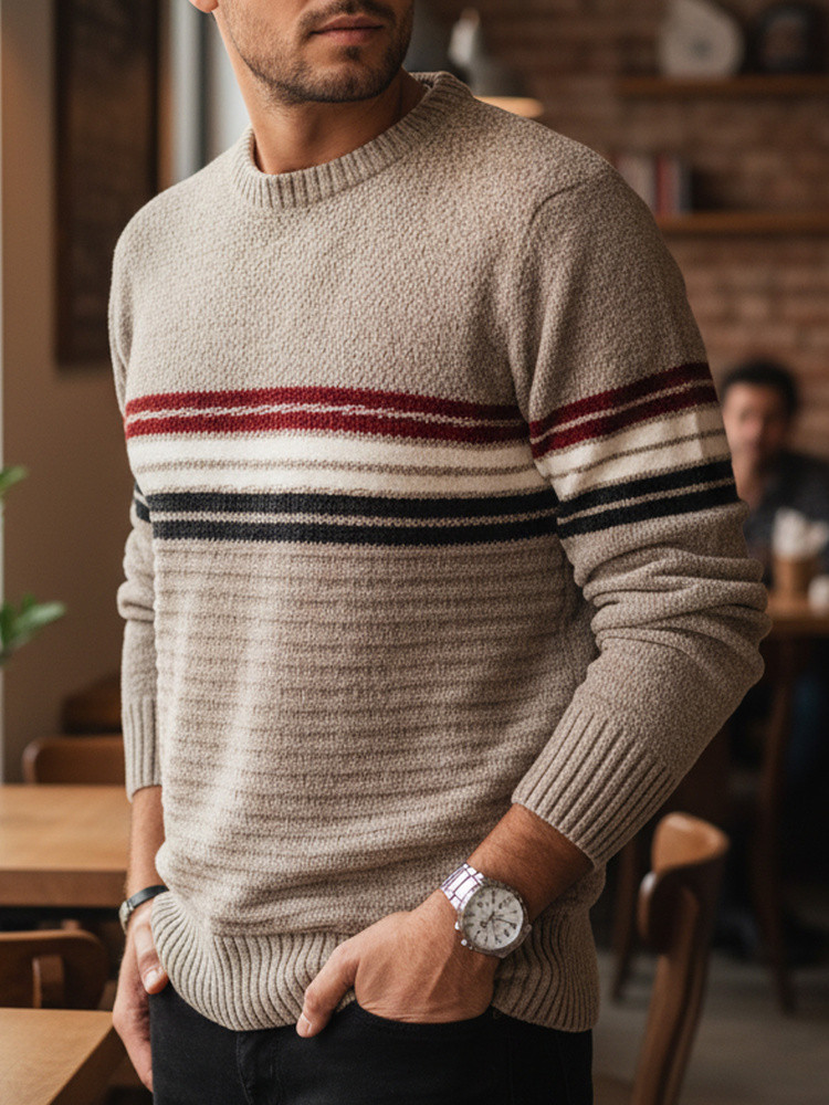 svetr s poutavým moderním pruhovaným vzorem, který dokonale zapadá do městských trendů. Díky měkkému materiálu se pohodlně nosí po celý den a klasický střih dodá eleganci každému outfitu. Ideální pro kombinaci s džínami i elegantními kalhotami, pro ty, kteří ocení styl a pohodlí.