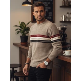 Přidání recenze k Pánský pruhovaný svetr světle hnědý FashionStreet WX2282