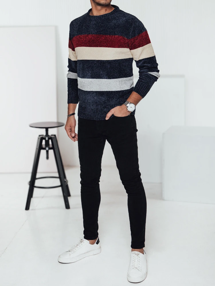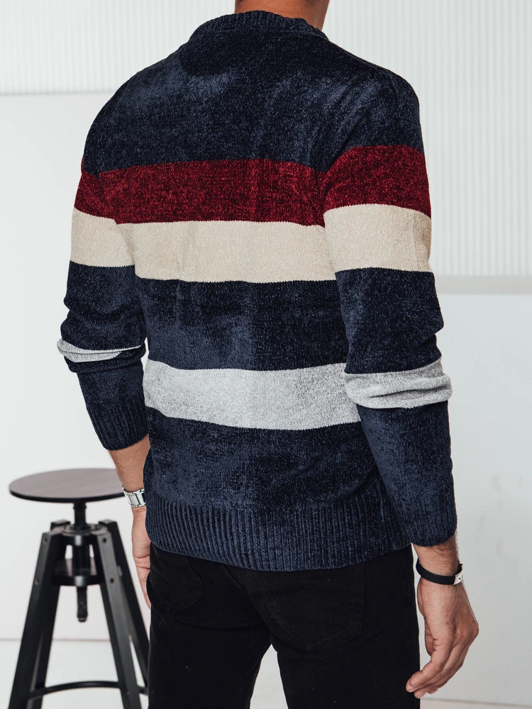 Pánský pruhovaný tmavě modrý svetr FashionStreet WX2240