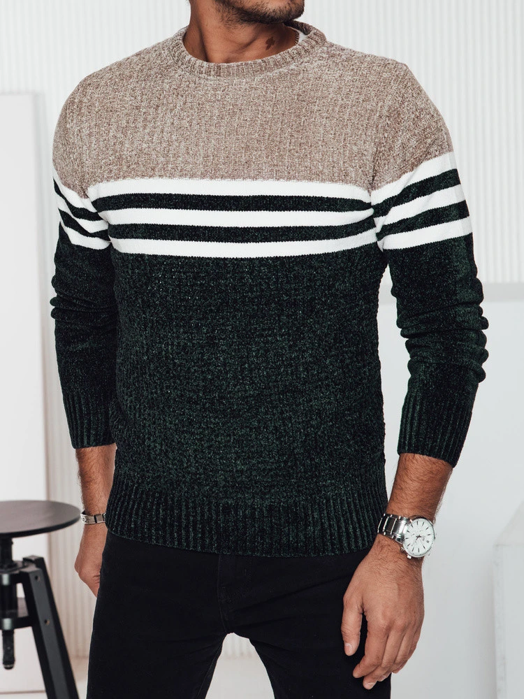 Pánský pruhovaný zelený svetr Dstreet model 21982383 - FashionStreet