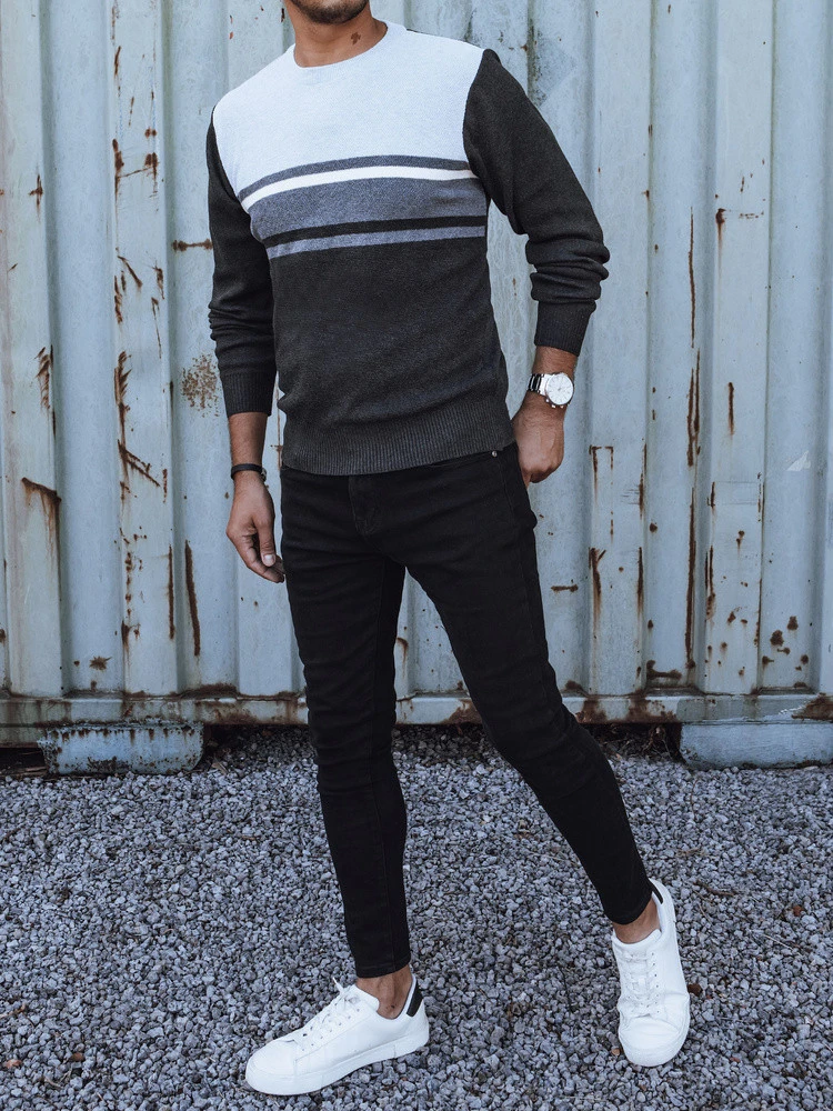 stylový pánský svetr, který kombinuje pohodlí s elegancí, je vyroben z měkké tkaniny pro celodenní pohodlí. Jemné proužky dodávají svetru eleganci, takže je ideální volbou pro běžné i formálnější vycházky.