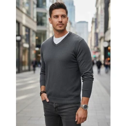 Swetry męskie z dekoltem w serek WX2316 jasnoszary