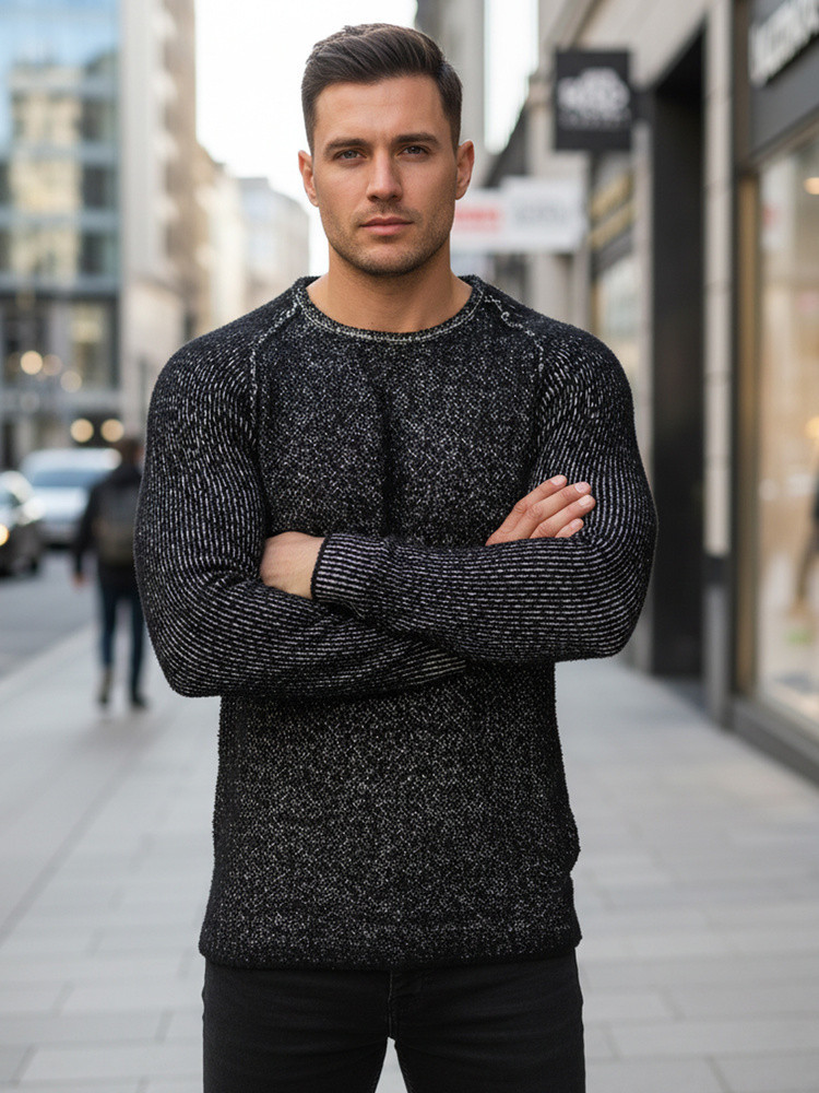 Nowoczesny sweter męski z wyrazistą fakturą, która dodaje stylu każdej stylizacji. Wykonany z trwałych i miękkich materiałów, zapewnia komfort noszenia przez cały dzień. Idealny na chłodniejsze dni, zarówno na co dzień, jak i na wieczorne wyjścia.