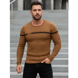 Pánský svetr přes hlavu ve velbloudí barvě FashionStreet WX1625